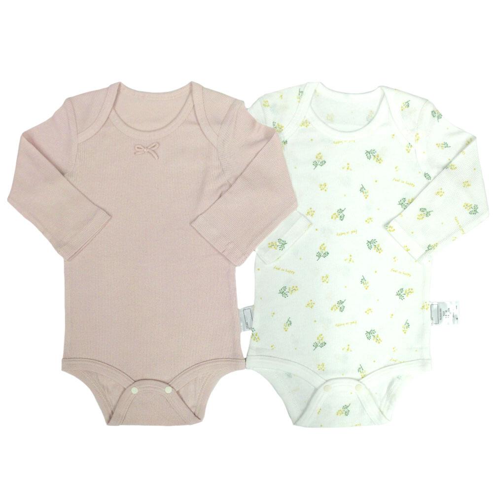 長袖ロンパース肌着 2枚組 テレコ ミモザ ピンク×80cm ベビーザらス限定