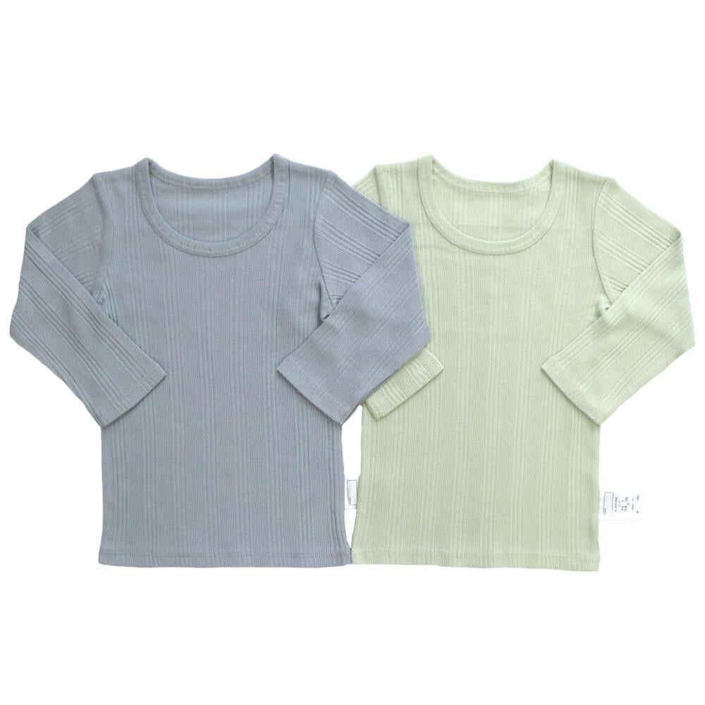 長袖シャツ肌着 2枚組 抗菌防臭ランダムリブ ブルー×90cm ベビーザらス限定