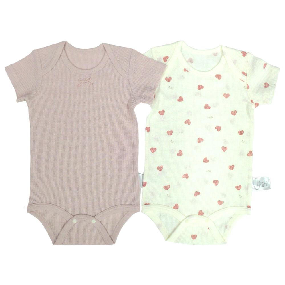 半袖ロンパース肌着 2枚組 ワッフル ハート ピンク×80cm ベビーザらス限定