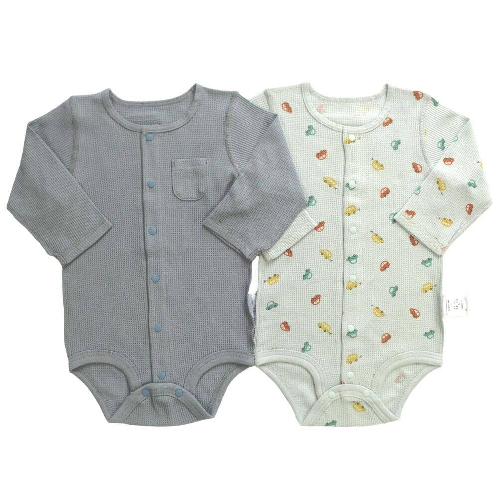 長袖前開きロンパース肌着 2枚組 ワッフル 車 ブルー×80cm ベビーザらス限定
