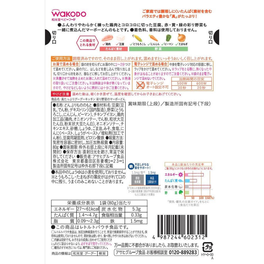 豆腐(豆乳、でん粉、デキストリン)(国内製造)、野菜(とうもろこし、にんじん、ピーマン)、チキンブイヨン、鶏肉加工品(鶏肉、オニオンソテー、でん粉、粒状大豆たん白、粉末状大豆たん白)、オニオンソテー、チキンエキス、砂糖、しょうゆ、ごま油、みそ、食塩、にんにくペースト、しょうがペースト/増粘剤(加工でん粉)、豆腐用凝固剤、ピロリン酸鉄