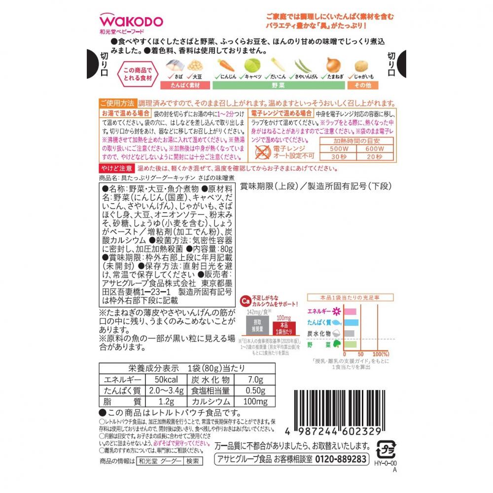 野菜(にんじん(国産)、キャベツ、だいこん、さやいんげん)、じゃがいも、さばほぐし身、大豆、オニオンソテー、粉末みそ、砂糖、しょうゆ(小麦を含む)、しょうがペースト/増粘剤(加工でん粉)、炭酸カルシウム