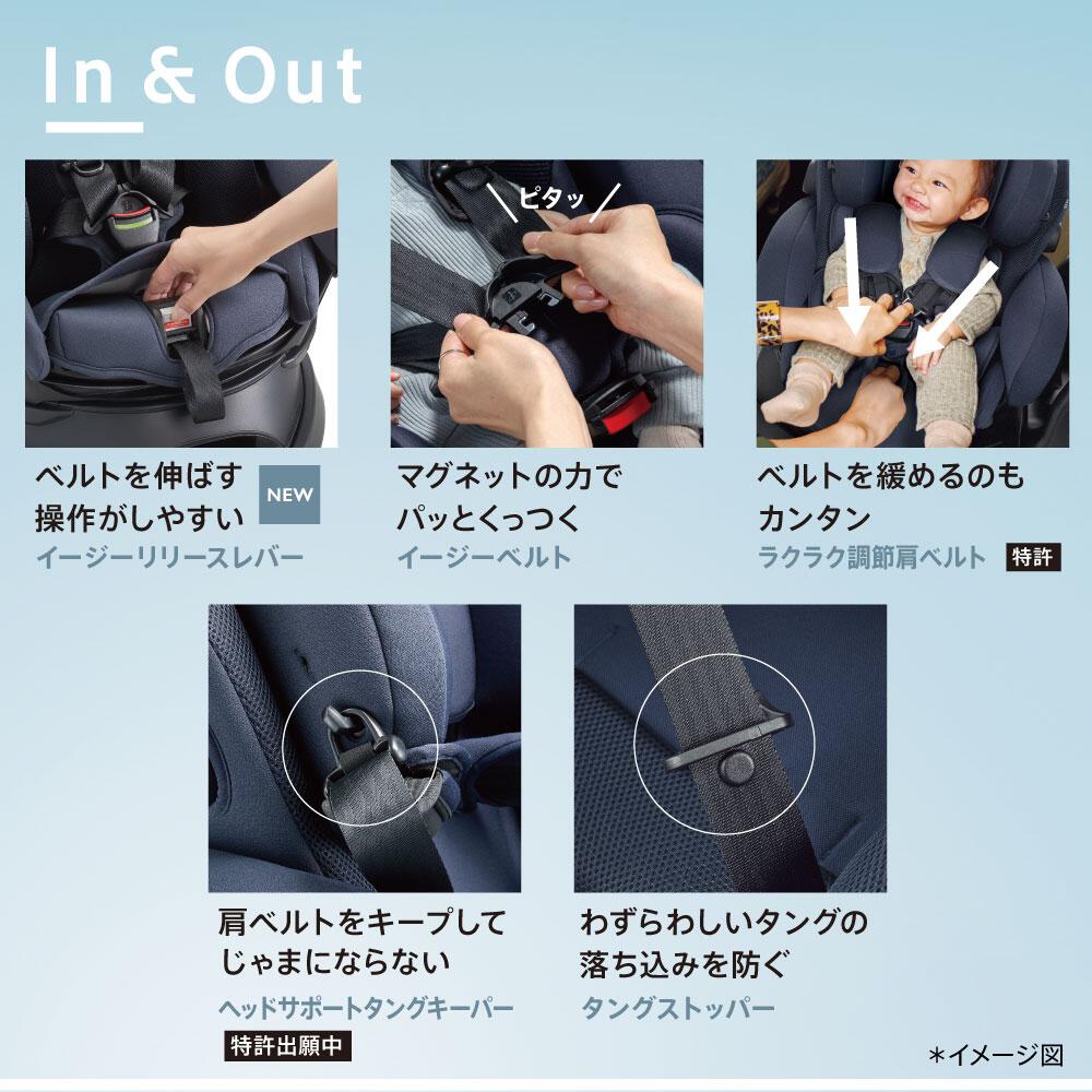 回転レバーを、サッと手が届くシート上部にセットすることで、力の弱いママでもカンタン&スムーズに回転操作ができます