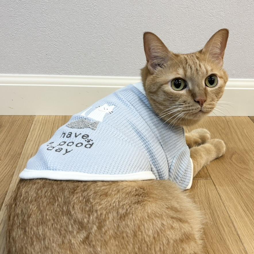 伸縮性があるので猫ちゃんの着用もスムーズに可能です。
