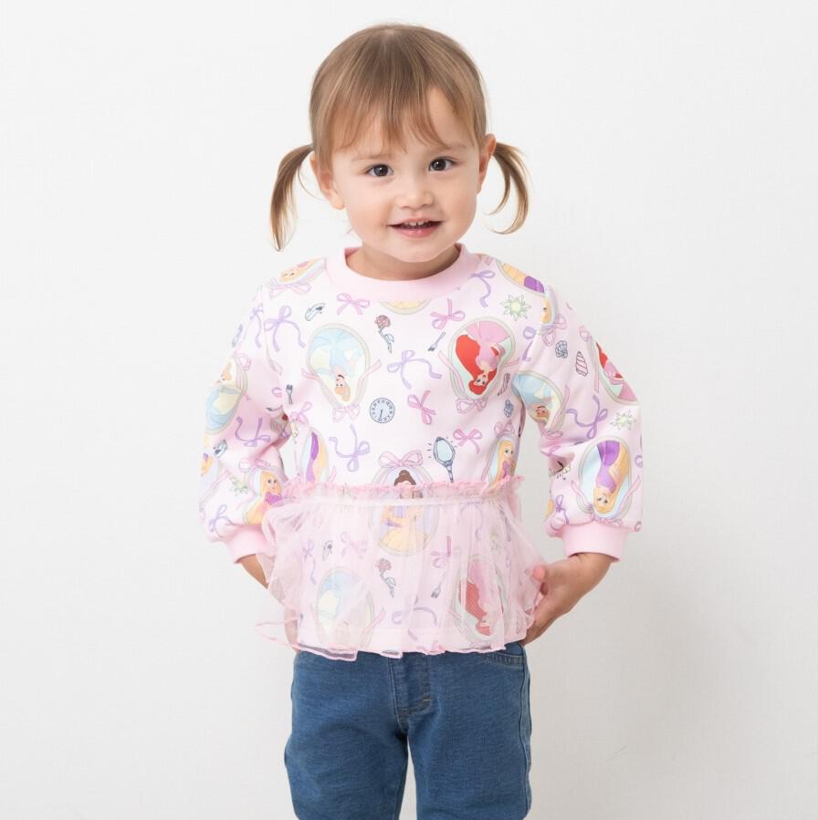 【Sophitica × tsumashi1118さん】Disney プリンセス 裏毛トレーナー 総柄 ピンク×90cm ベビーザらス限定