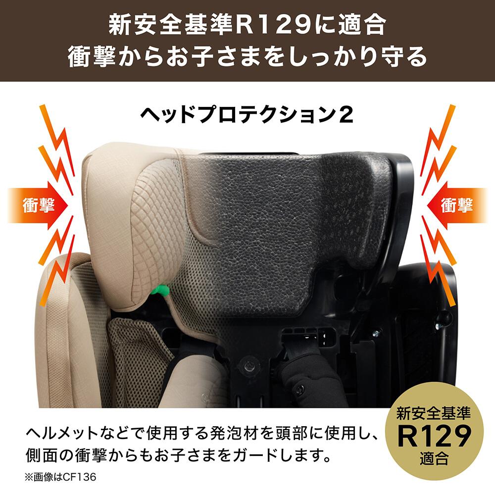 取付もお子さまの乗せ降ろしもパパッと完了!R129基準適合のジャンピングハーネス付きジュニアシート