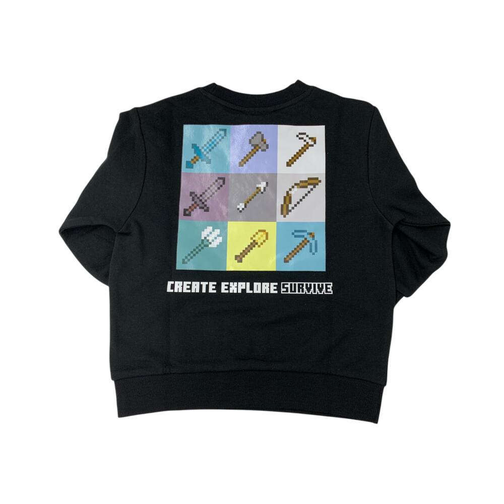 マインクラフト 裏毛アイテム柄トレーナー ブラック×140cm
