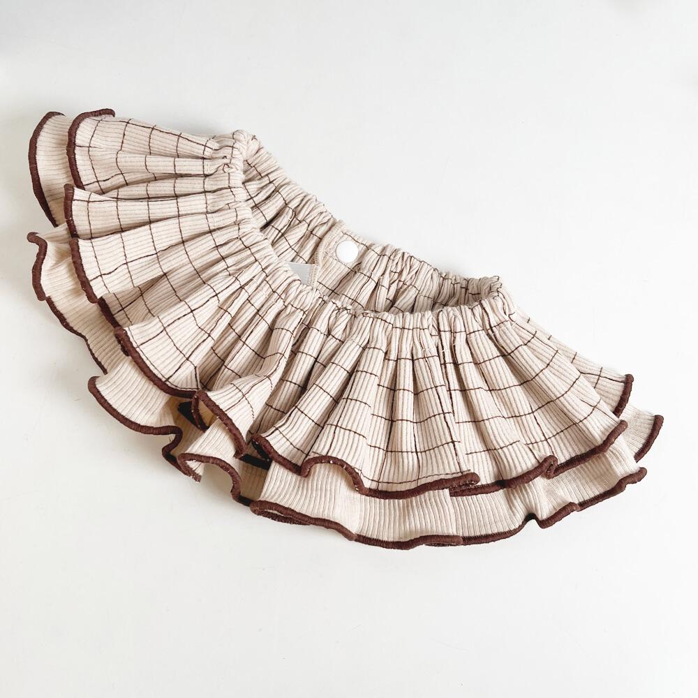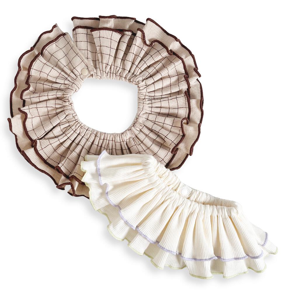 ぐるりと入ったたっぷりギャザーのフリルがふんわりと揺れ、着けるだけでコーデが華やかに。