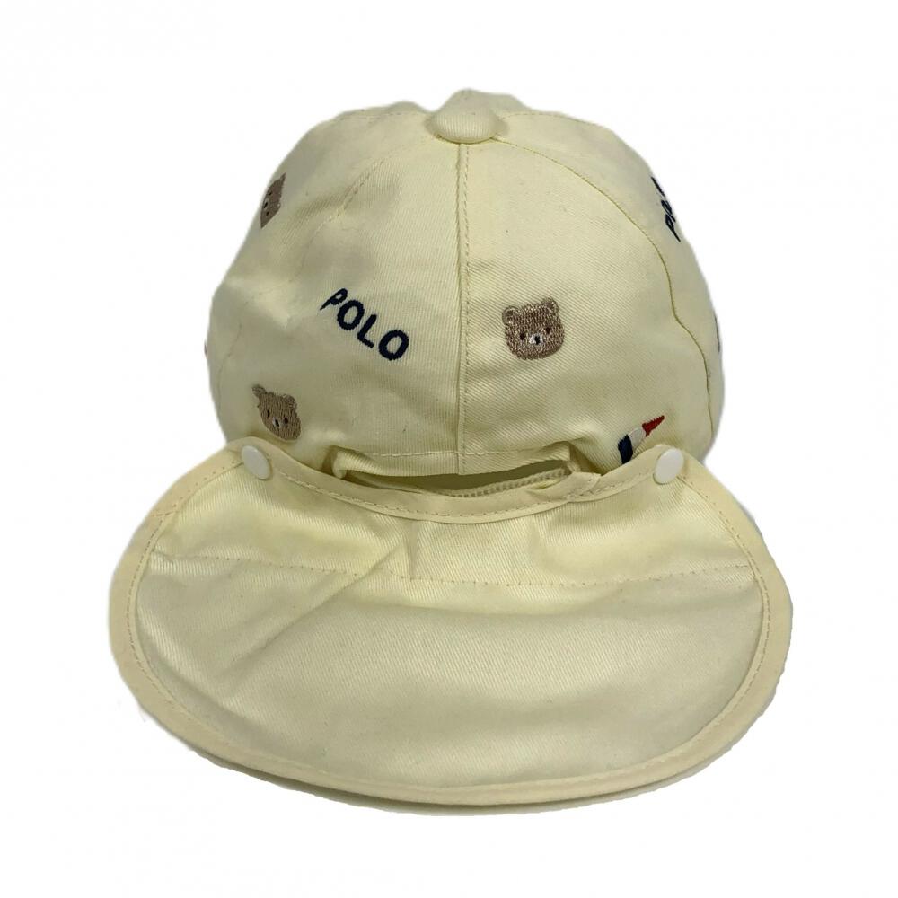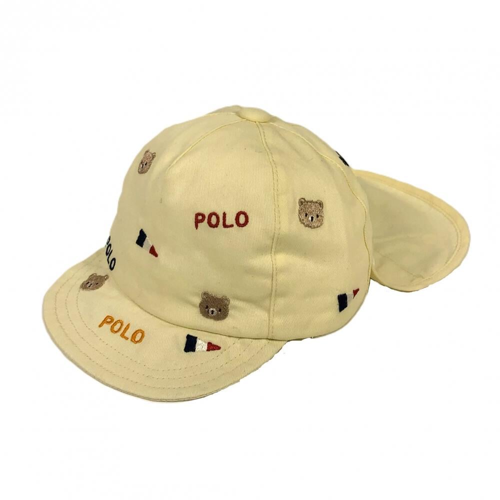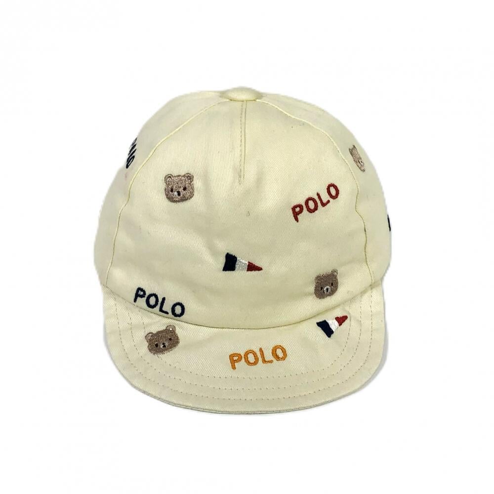 オフホワイトベースの本体にクマ 顔、フラッグ、POLOロゴがカラフルな総柄刺繍で入ったキャップ!