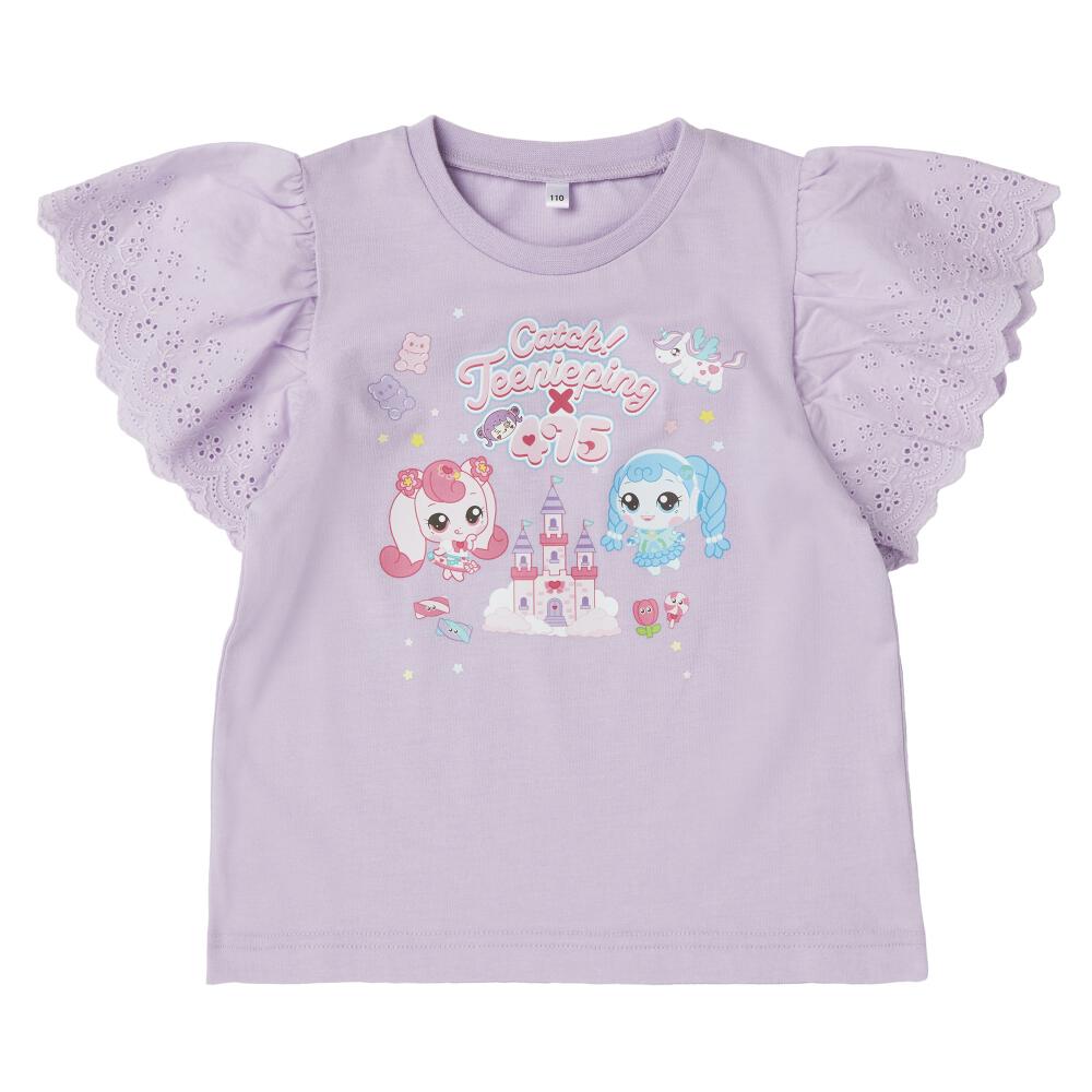 【ティニピン×しなこ】半袖Tシャツ 袖レース 天竺 パープル×130cm