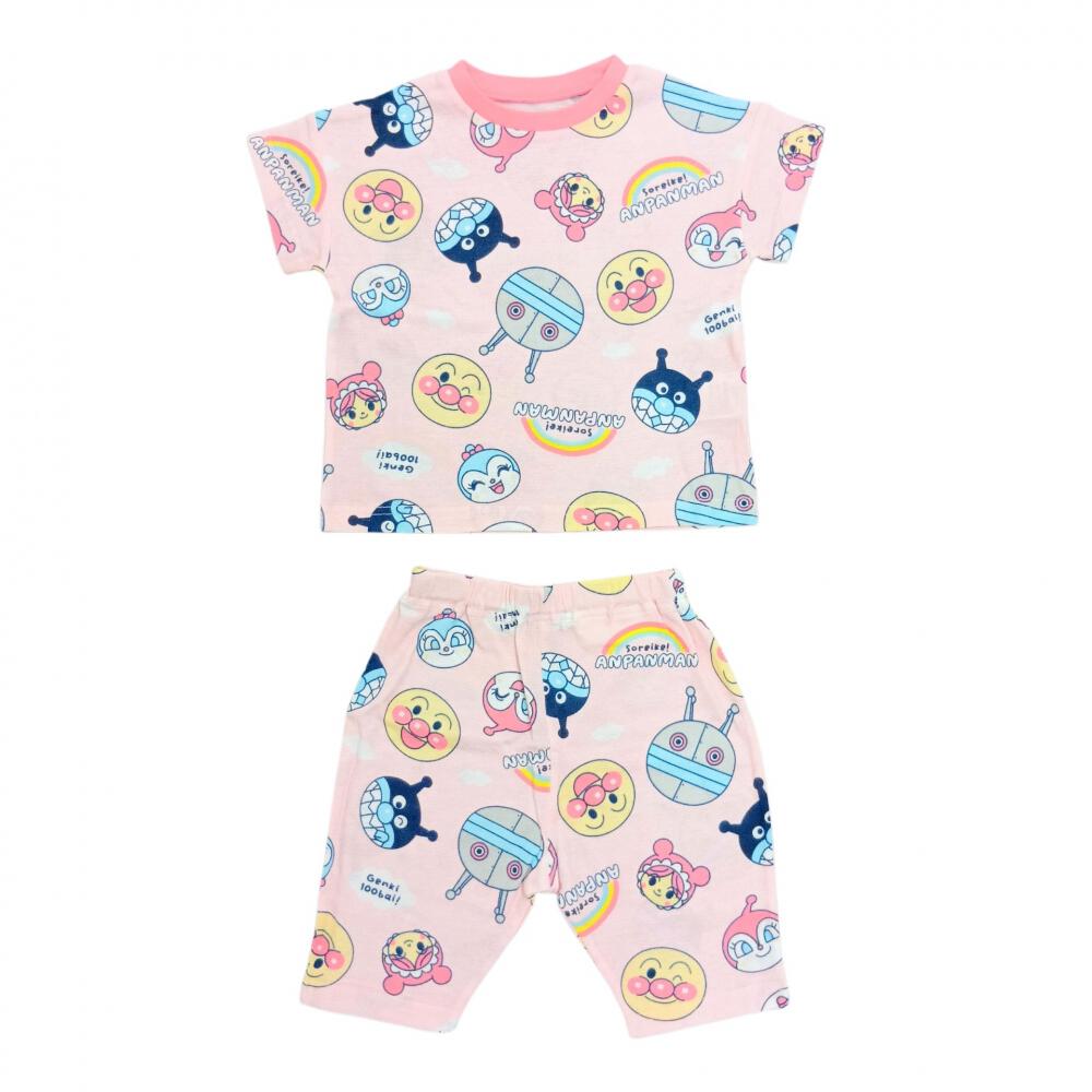 アンパンマン フェイス総柄半袖パジャマ メッシュ ピンク×80cm