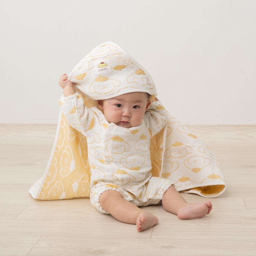 サンリオの人気キャラクター「キティ」「ハンギョドン」「ポムポムプリン」の多重織ガーゼおくるみです。