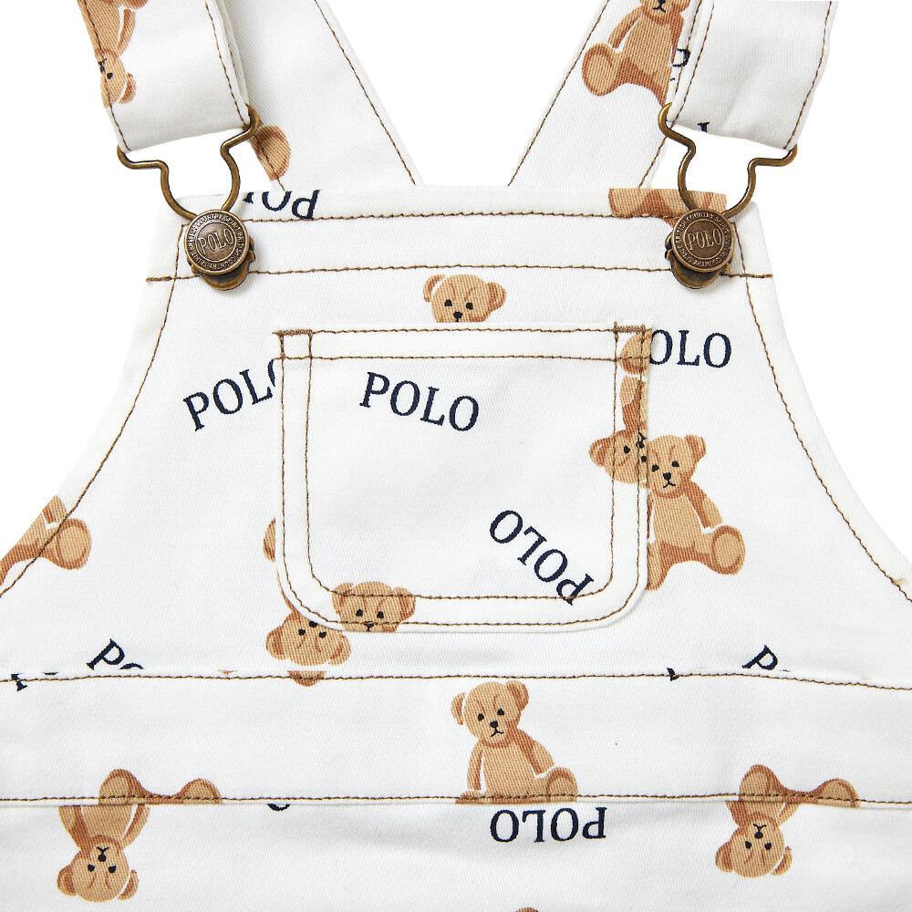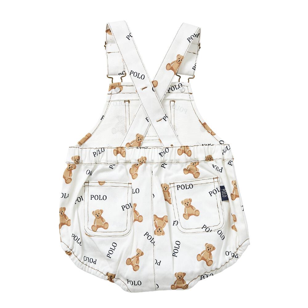 大人気!くまとロゴの総柄がかわいいサロペットロンパース