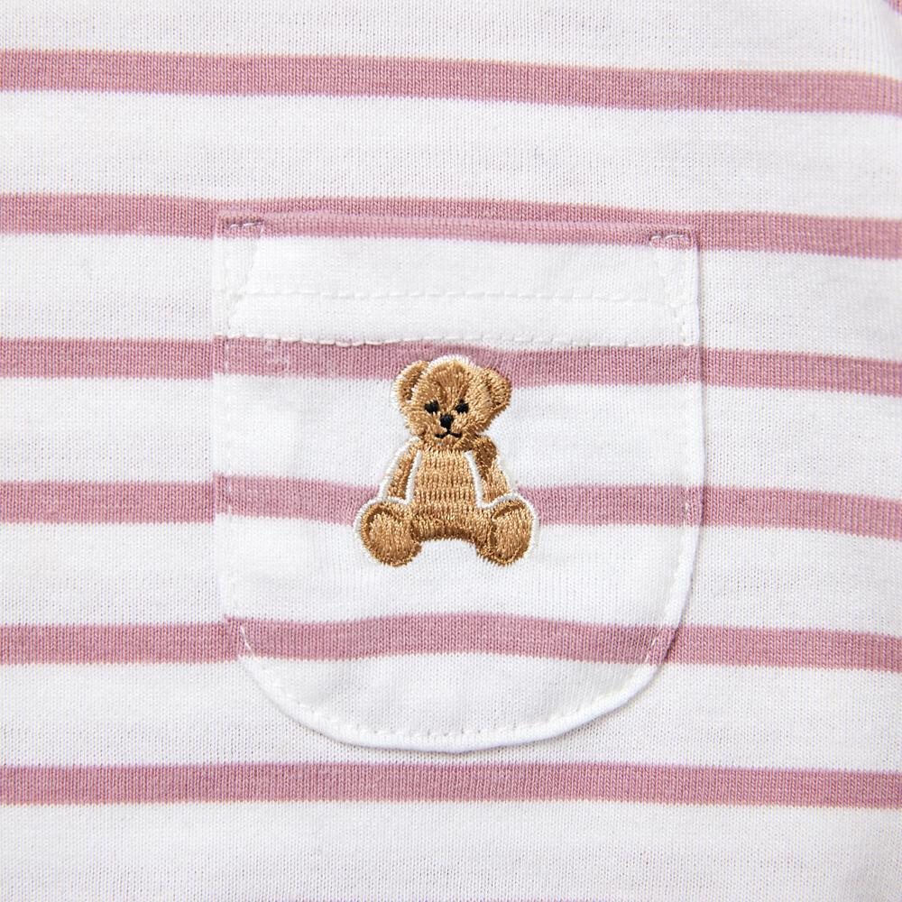 ポケットにクマ刺繍が可愛らしくデザインされたボーダーボディスーツ