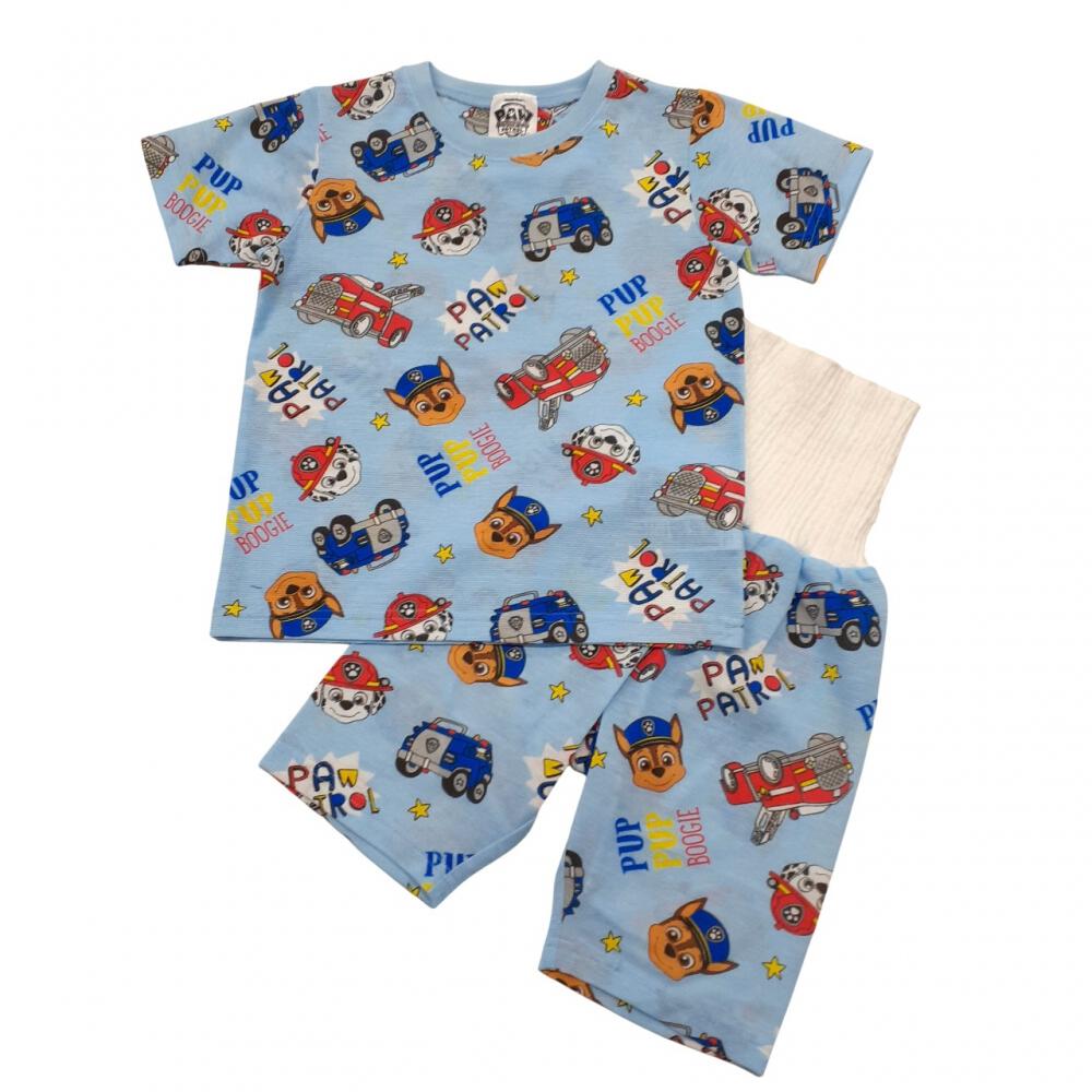 パウパトロール 半袖パジャマ メッシュ 総柄丸首 ブルー×100cm