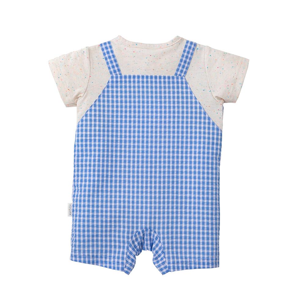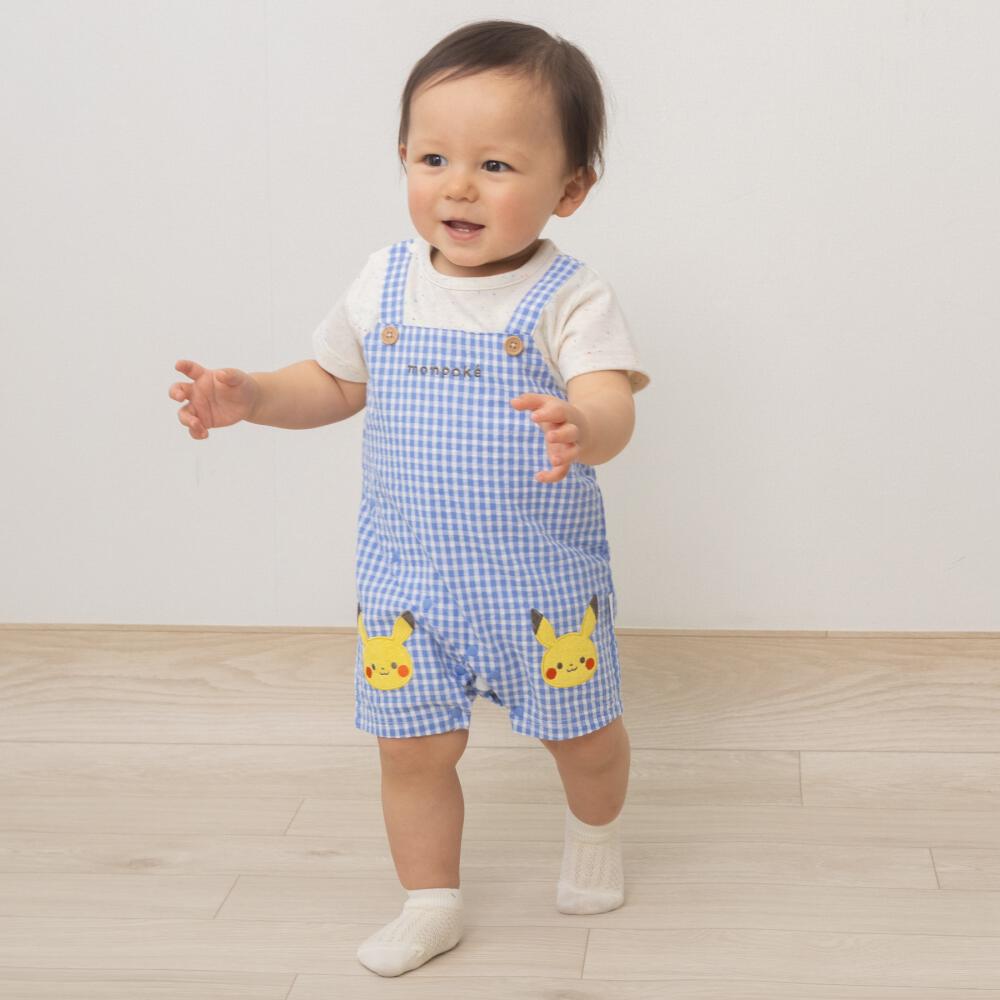 monpoke モンポケ 半袖ロンパース ギンガムチェック サロペット型 ブルー×80cm ベビーザらス限定 赤ちゃん 出産準備 出産祝い ベビー服 子供服