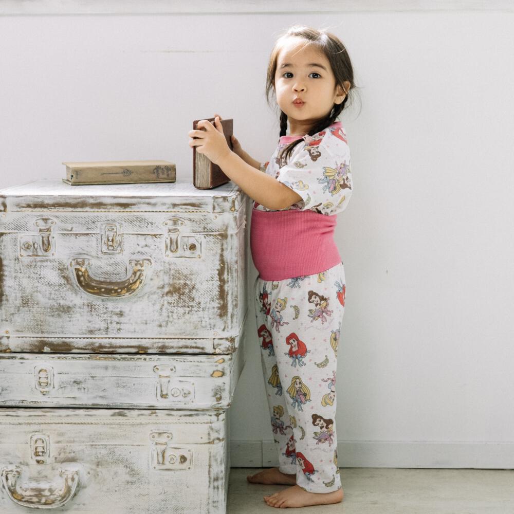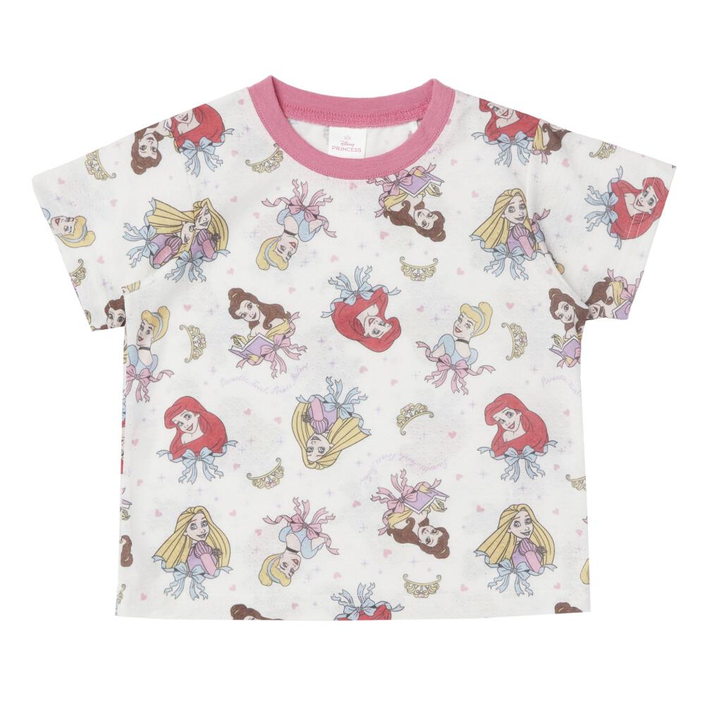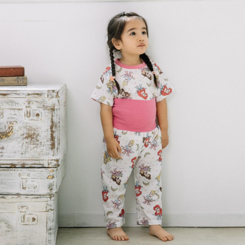 ディズニー 半袖パジャマ プリンセス 総柄 腹巻付き ピンク×110cm