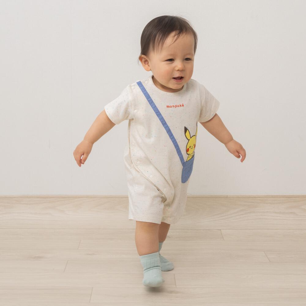monpoke モンポケ 半袖ロンパース ポシェット付き風 ナチュラル×80cm