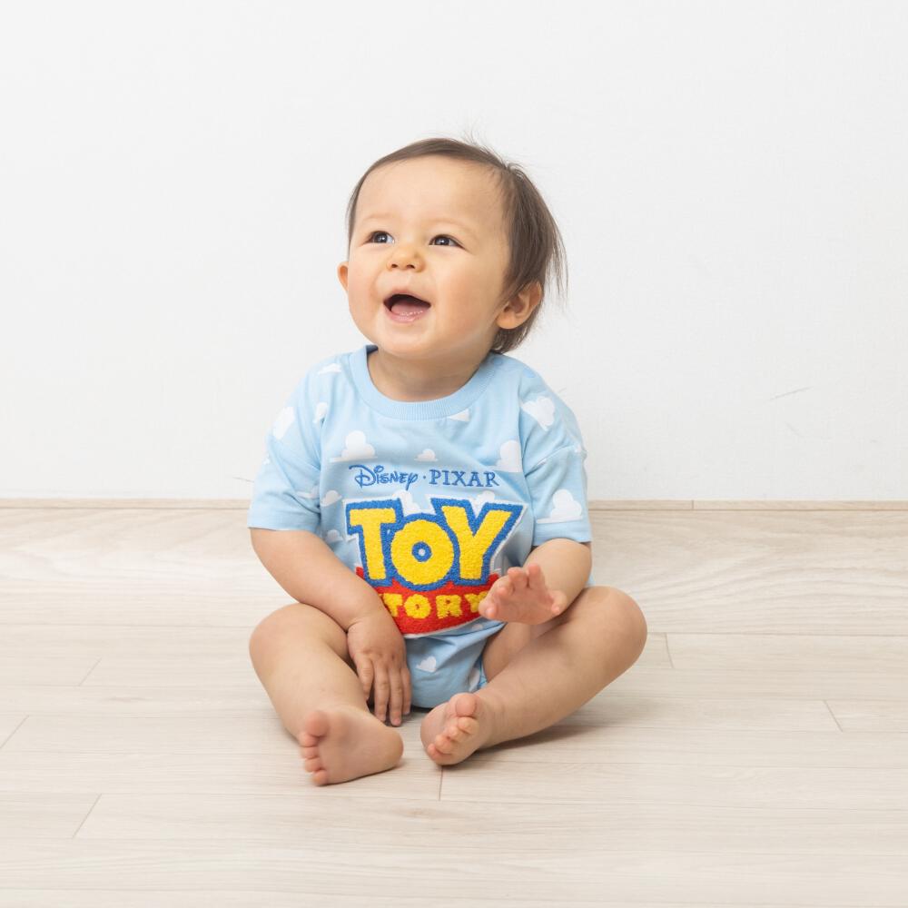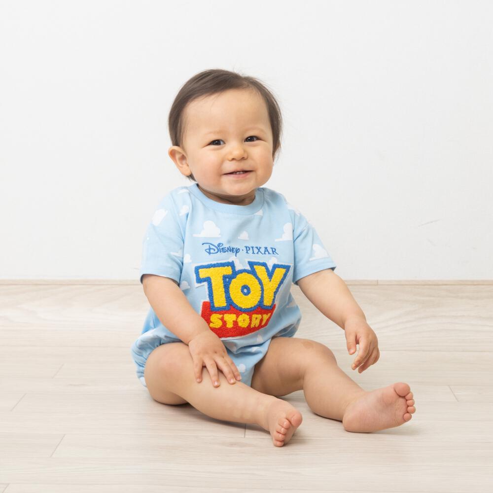 Disney ディズニー 半袖ボディスーツ ドッカン サガラ TOY STORY ロゴ サックス×80cm ベビーザらス限定
