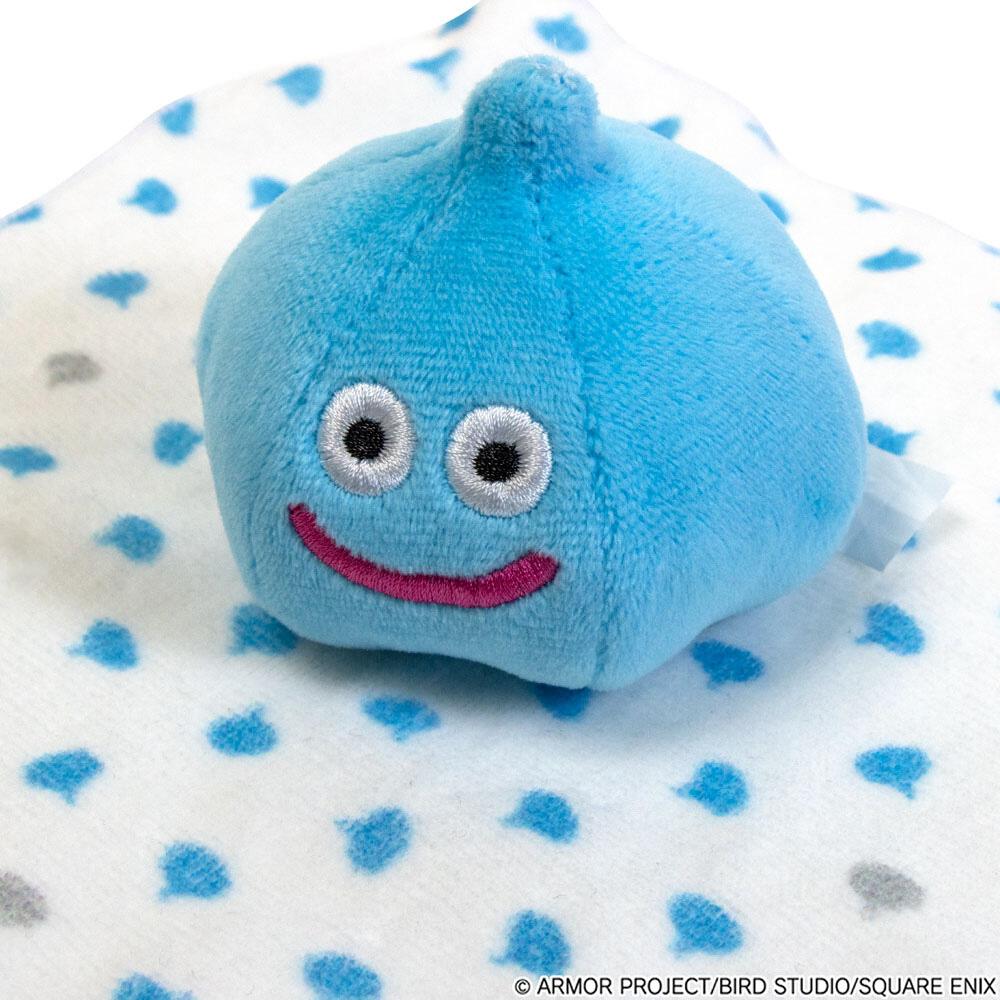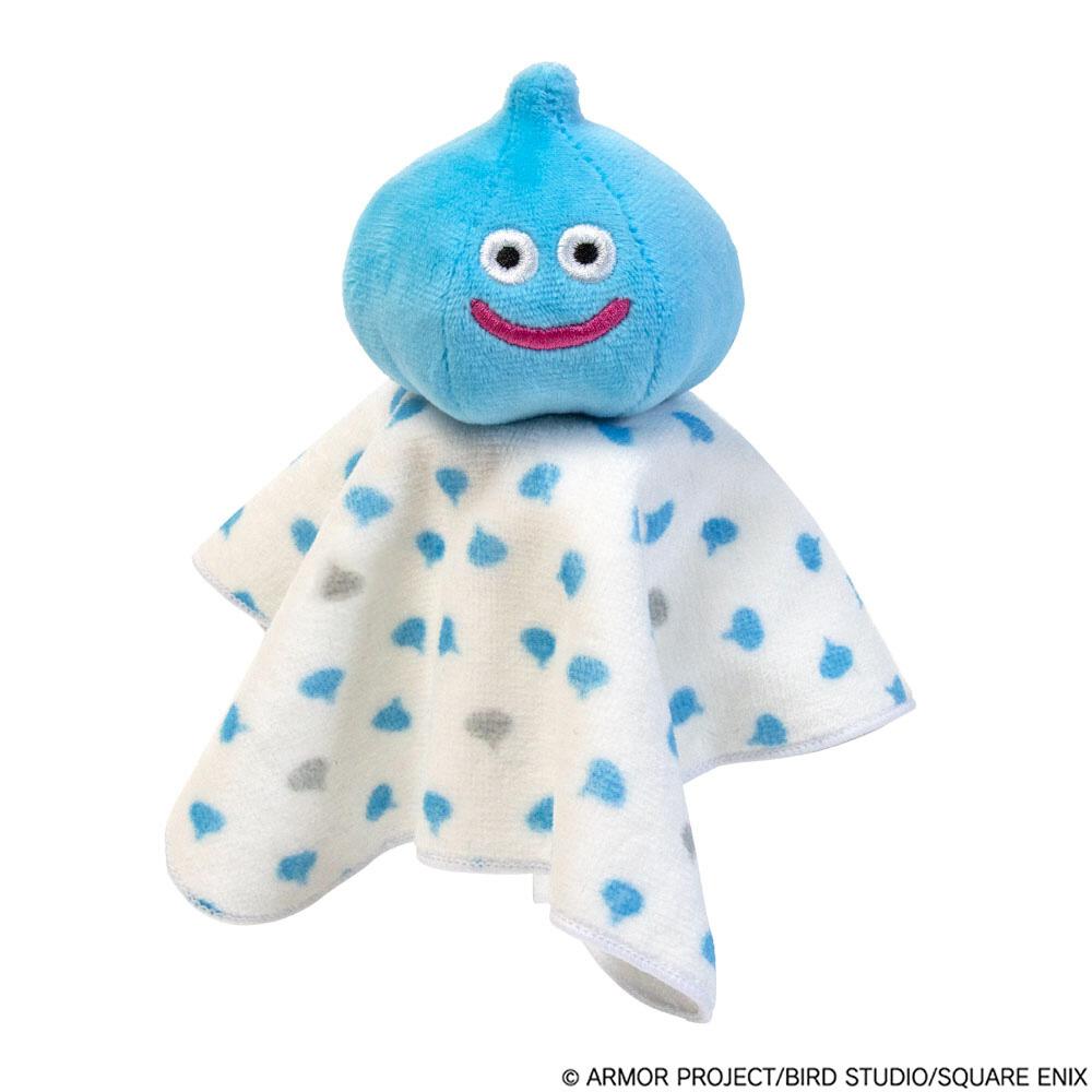 スライム/メタルスライムのぬいぐるみが付いた、赤ちゃんの手にぴったりのにぎにぎタオル。