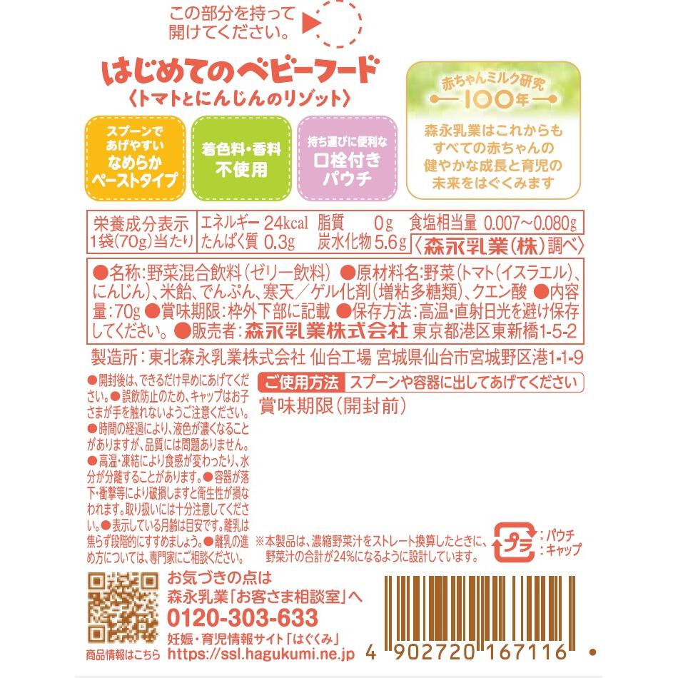 トマトとにんじんの味わいをそのまま生かした主食として使えるリゾットタイプのベビーフードです。