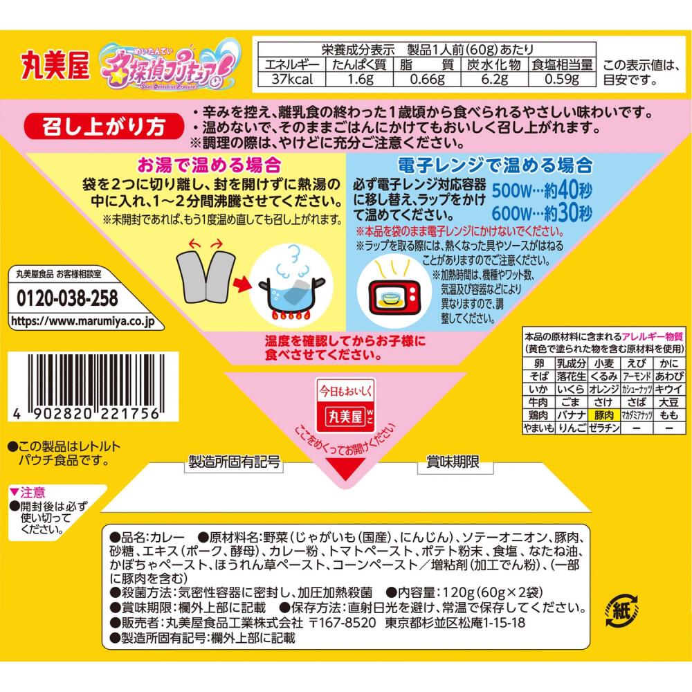 原材料:野菜(じゃがいも(国産)、にんじん)、ソテーオニオン、豚肉、砂糖、エキス(ポーク、酵母)、カレー粉、トマトペースト、ポテト粉末、食塩、なたね油、かぼちゃペースト、ほうれん草ペースト、コーンペースト/増粘剤(加工でん粉)(一部に豚肉を含む)