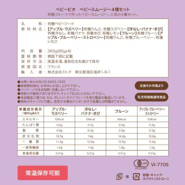有機フルーツと有機野菜で作った、オーガニックベビースムージーの人気4種類のセット品。