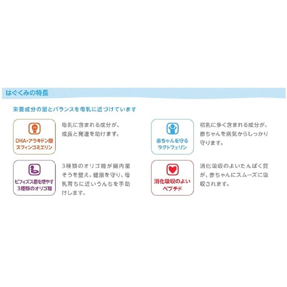 乳糖(アメリカ製造、ドイツ製造)、調整脂肪(パーム核油、パーム油、大豆油、エゴマ油)、ホエイパウダー(乳清たんぱく質)、脱脂粉乳、でんぷん分解物、乳清たんぱく質消化物、カゼイン、バターミルクパウダー、乳糖分解液(ラクチュロース)、ガラクトオリゴ糖液糖、ラフィノース、精製魚油、アラキドン酸含有油、カゼイン消化物、食塩、酵母、L-カルニチン/炭酸カルシウム、レシチン、炭酸カリウム、塩化マグネシウム、ビタミンC、ラクトフェリン、クエン酸三ナトリウム、イノシトール、リン酸水素二カリウム、コレステロール、塩化カルシウム、ピロリン酸第二鉄、タウリン、硫酸亜鉛、ビタミンE、シチジル酸ナトリウム、パントテン酸カルシウム、ニコチン酸アミド、ウリジル酸ナトリウム、硫酸銅、5’-アデニル酸、ビタミンA、イノシン酸ナトリウム、グアニル酸ナトリウム、ビタミンB6、ビタミンB1、葉酸、β-カロテン、カロテノイド、ビオチン、ビタミンD3、ビタミンB12
