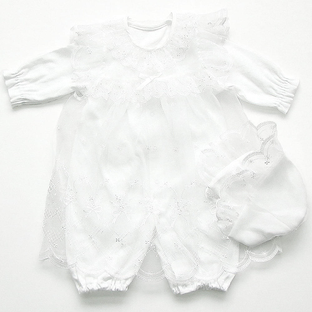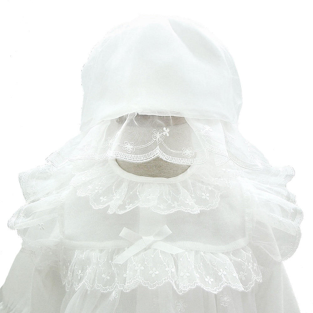 純真無垢な赤ちゃんに許された真っ白なドレスとチュールコートとフードのフォーマルウェアセットです。