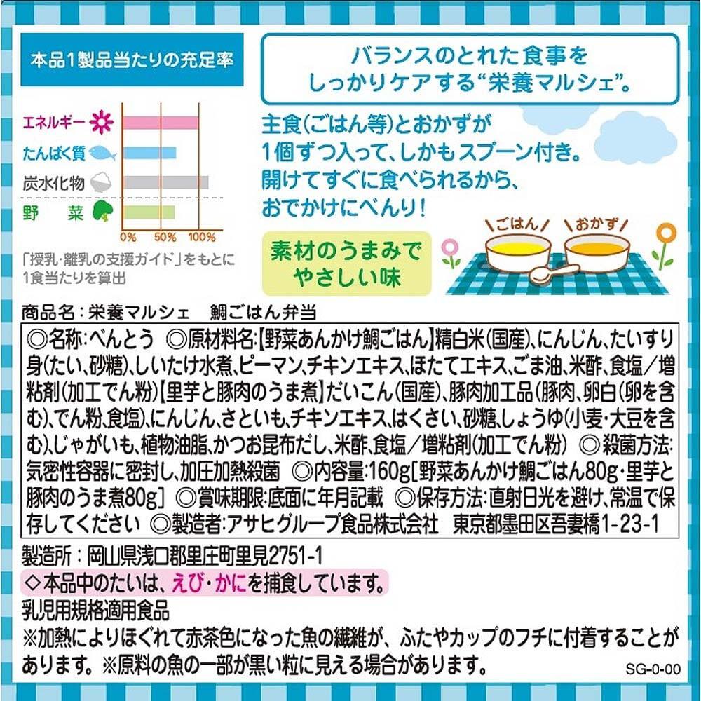 【野菜あんかけ鯛ごはん】精白米(国産)、野菜(にんじん、ピーマン)、たいすり身(たい、砂糖)、しいたけ、チキンエキス、ほたてエキス、ごま油、米酢、食塩/増粘剤(加工でん粉)