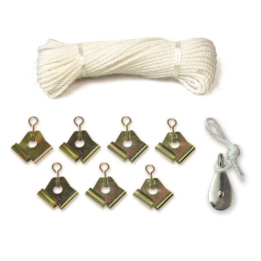 <全国無料配送>鯉のぼり用ロープのセットです。ロープに鯉を取り付けるためのスナップ、ロープを引き上げるための滑車もついています。ロープが傷んでしまったときの交換などに便利です。