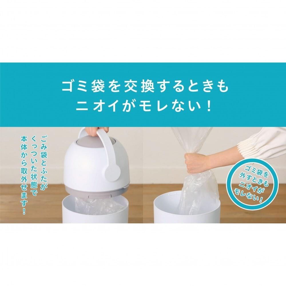 ●ゴミ袋の開口部を持って捨てられるので、交換の際にもニオイがもれません。