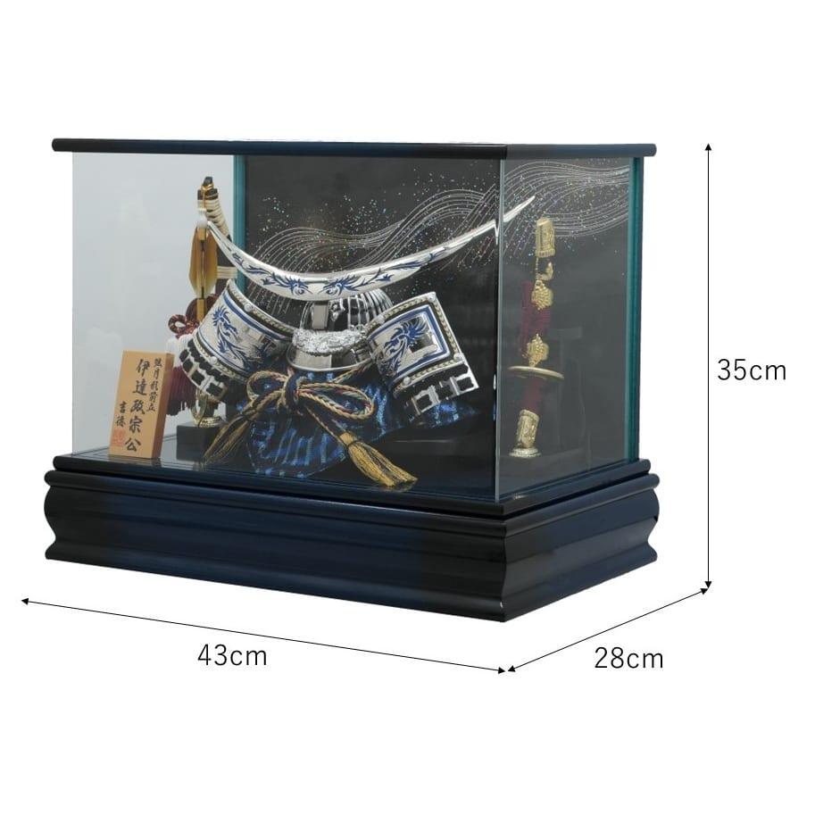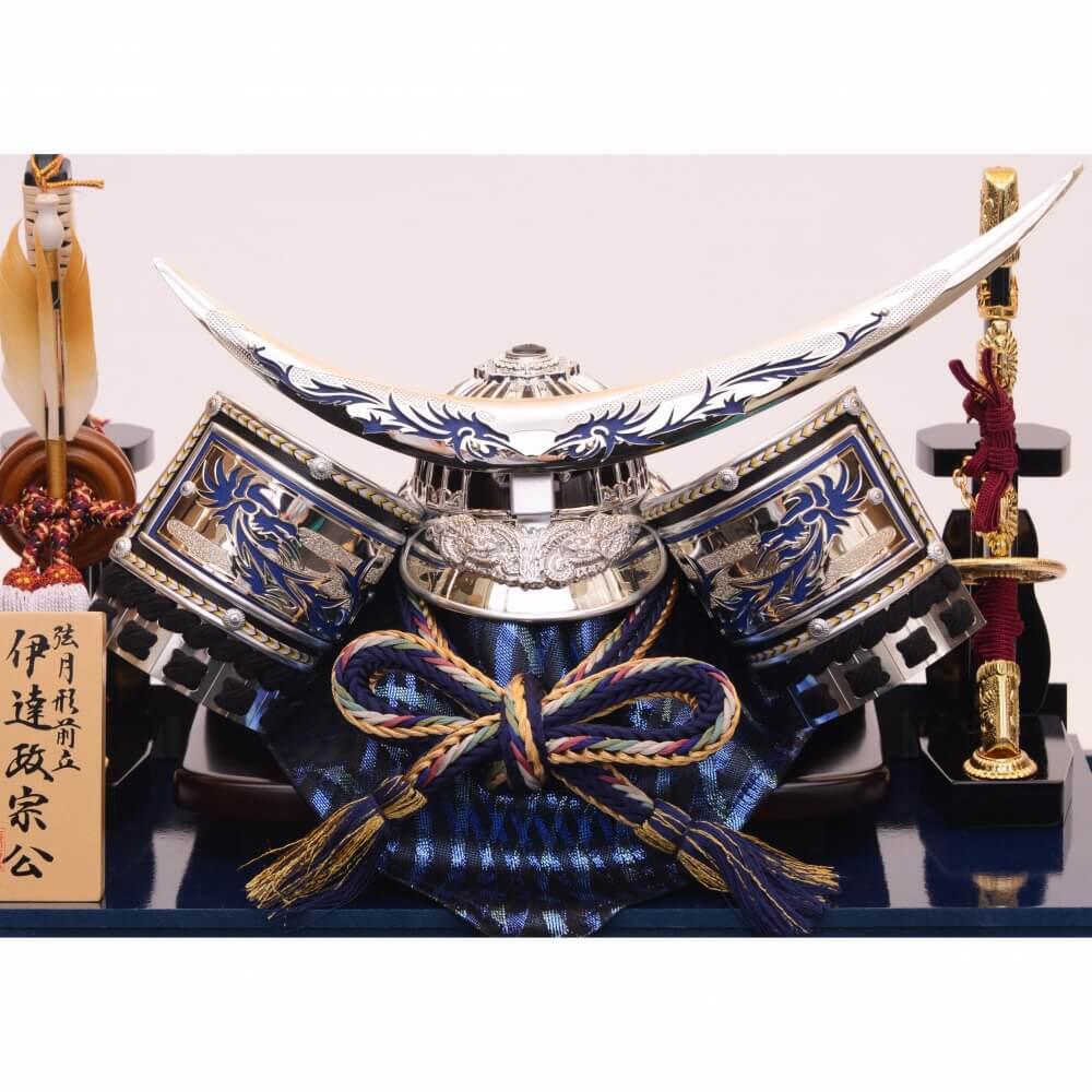 弦月形(三日月)の前立(まえたて)が特徴の勇将「伊達政宗公」の兜ケース飾りです。