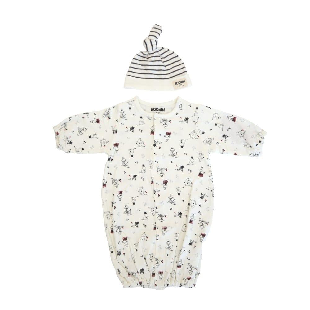 MOOMIN 新生児2WAYドレス 帽子付き 総柄 ムーミンファミリー(ホワイト×50-70cm) ベビーザらス限定