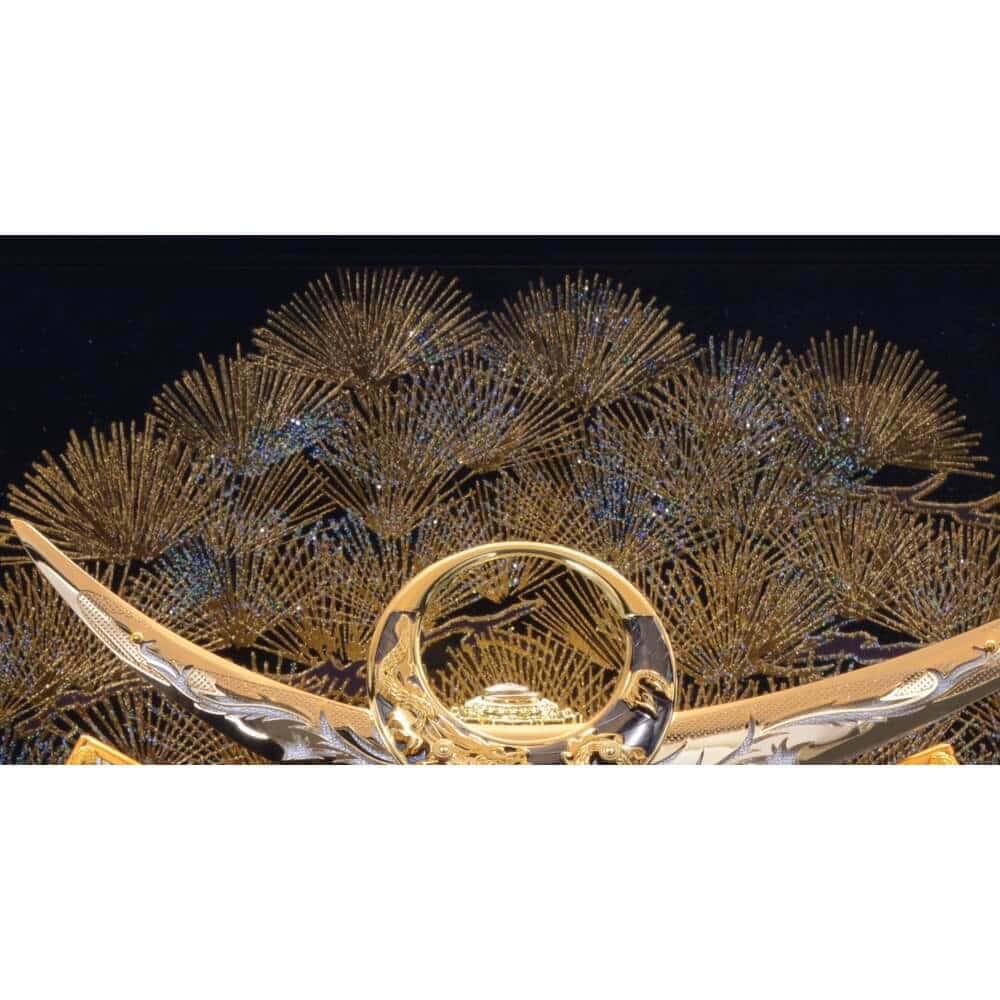 背景は豪華な金彩松です。LEDライトが設置されており、灯りを灯すと背景がきらきらと輝きます。