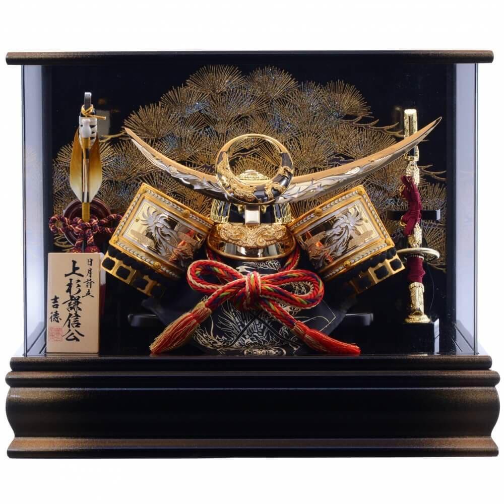 トイザらス・ベビーザらスがおすすめする 兜ケース飾り「上杉謙信金彩松LEDアクリル」の五月人形です。