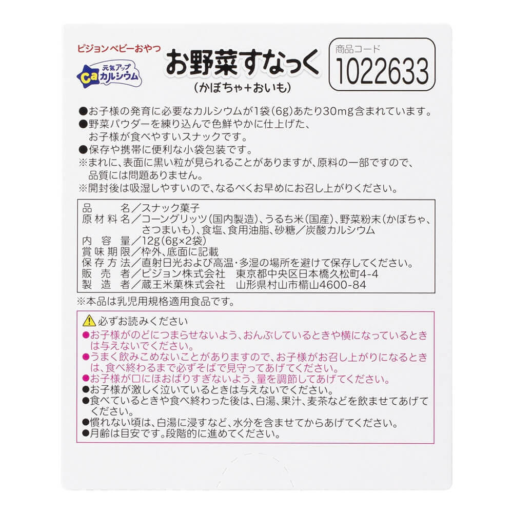 <主な材質>コーングリッツ(国内製造)、うるち米(国産)、野菜粉末(かぼちゃ、さつまいも)、食塩、食用油脂、砂糖/炭酸カルシウム