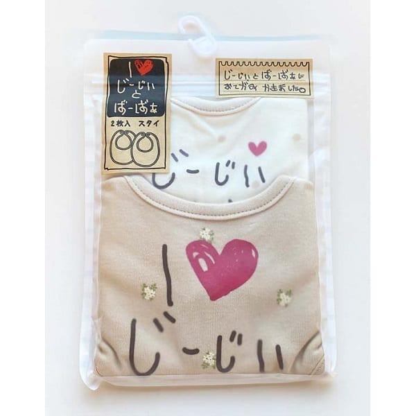アイラブじーじぃ&ばーばぁ スタイ 2枚組 じーじぃ (ベージュ×フリー) ベビーザらス限定