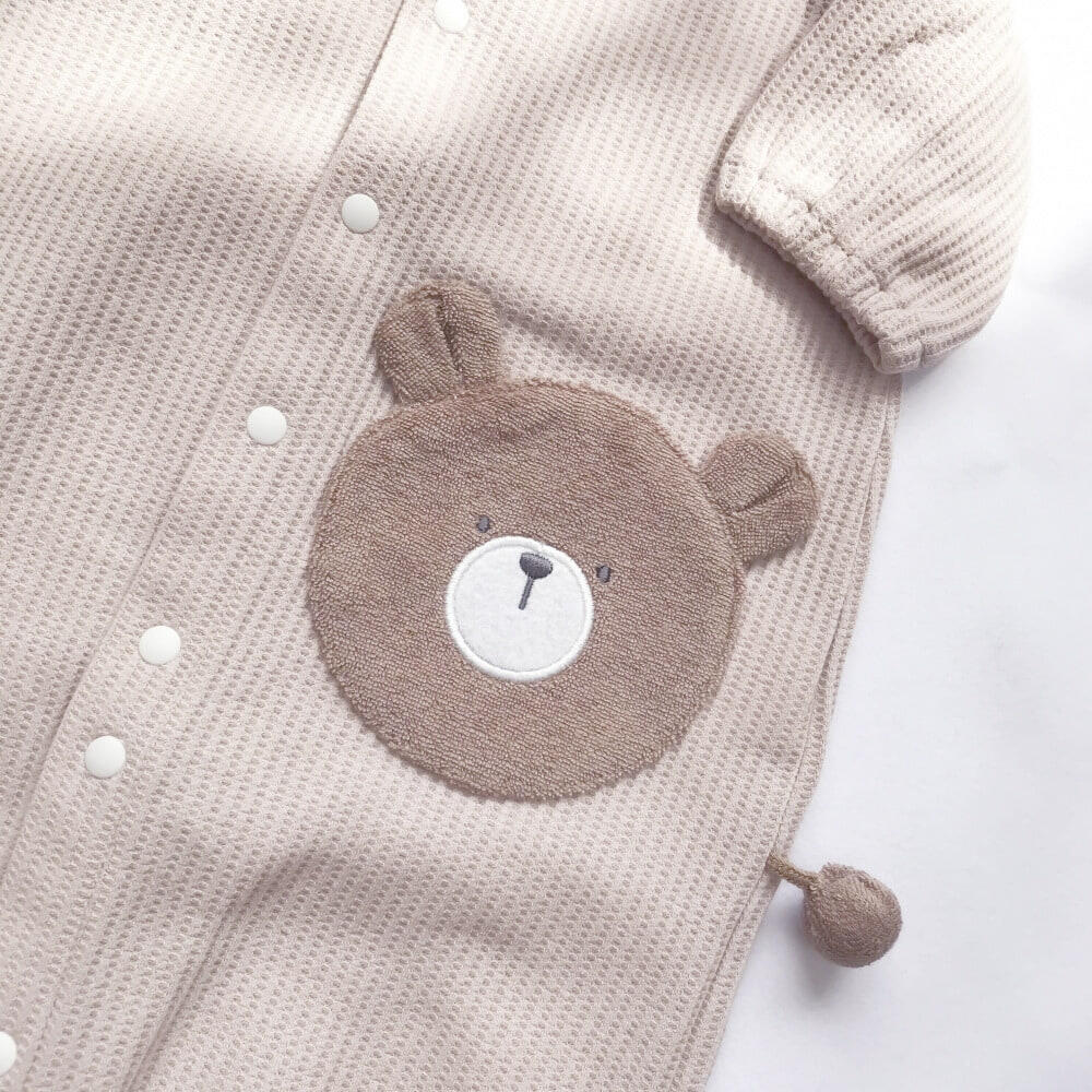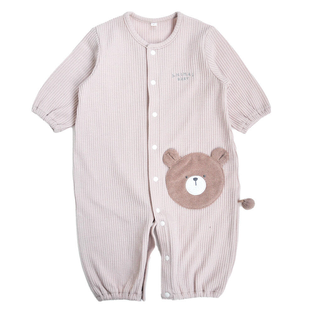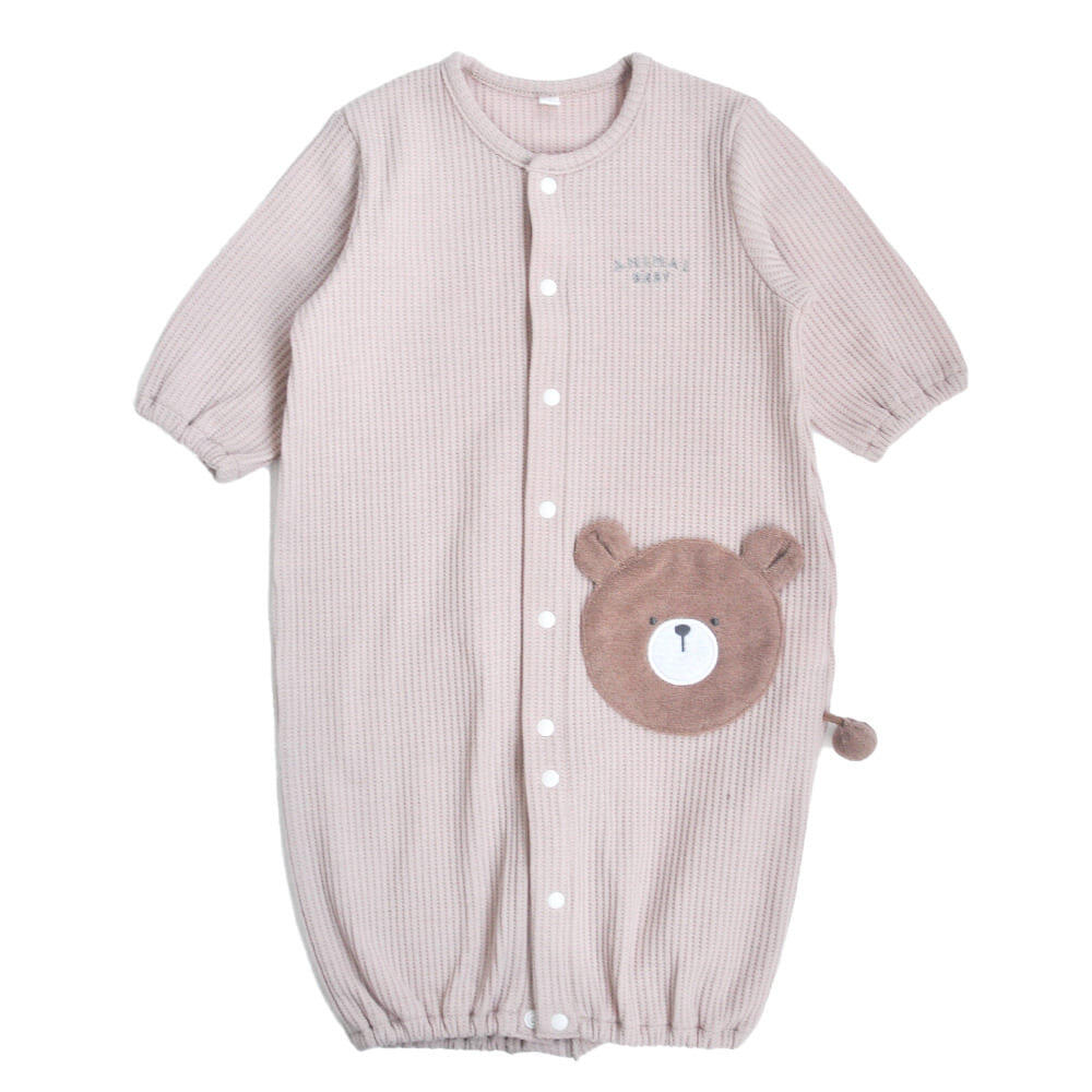 股下スナップボタンの止め方でドレスオール、カバーオールと2wayで使い分けられるので