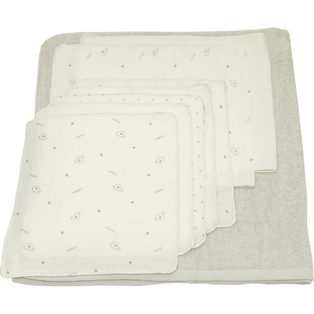 <セット内容>バスタオル1枚、沐浴ガーゼ2枚、ガーゼハンカチ5枚