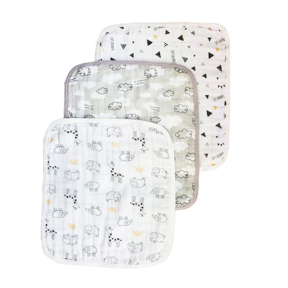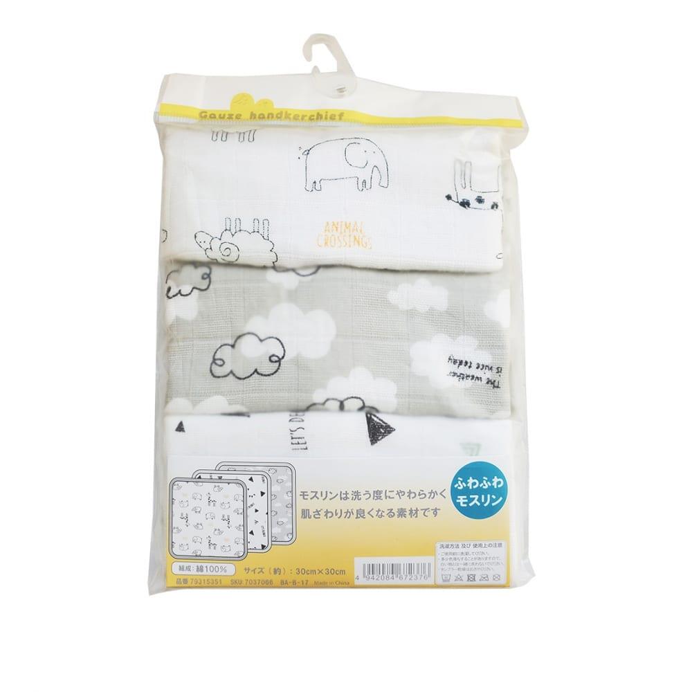モスリンガーゼハンカチ 3枚組 アニマル×さんかく×雲 ベビーザらス限定