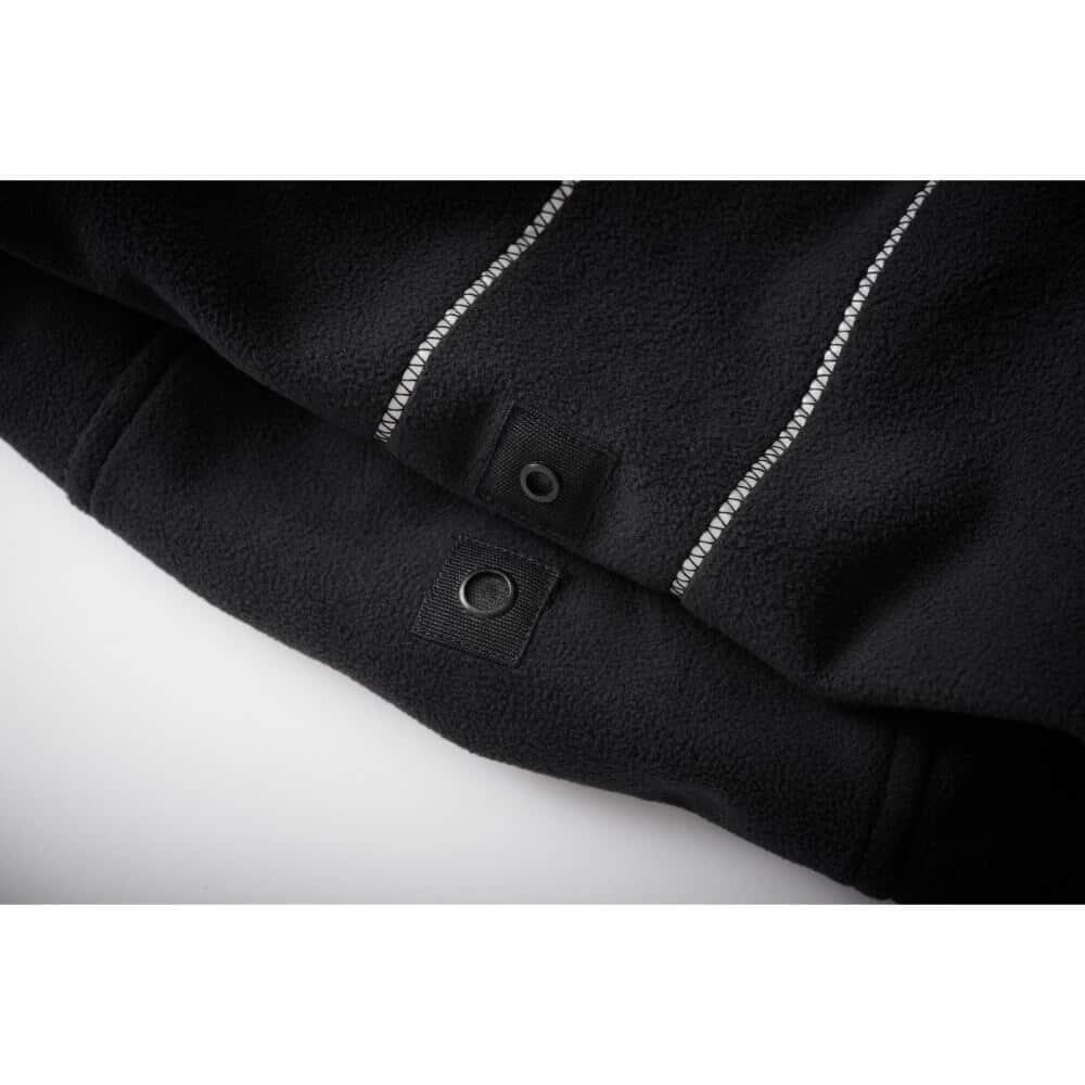柔らかなマイクロフリースに撥水性のある特殊な膜をサンドウィッチ。雨や風といった厳しい寒さから赤ちゃんを守ります。