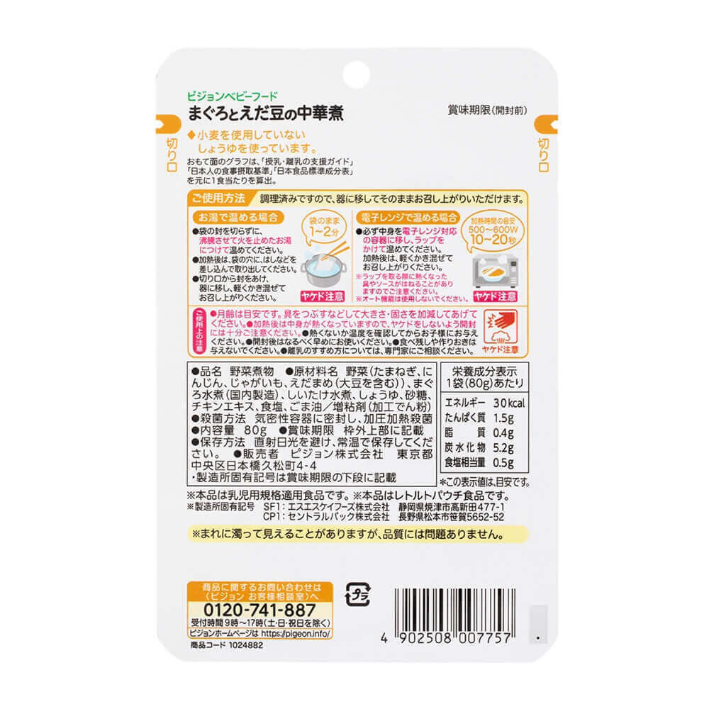 野菜(たまねぎ、にんじん、じゃがいも、えだまめ(大豆を含む))、まぐろ水煮(国内製造)、しいたけ水煮、しょうゆ、砂糖、チキンエキス、食塩、ごま油/増粘剤(加工でん粉)