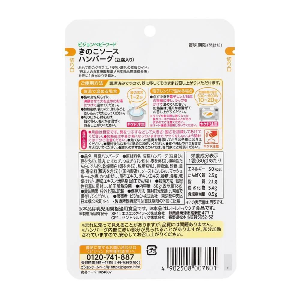 ピジョン 食育レシピ きのこソースハンバーグ(豆腐入り) 80g 【離乳食 ベビーフード】 【12ヵ月~】 (お一人様10点限り)