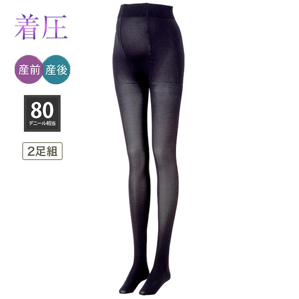 ウエストらくらく着圧タイツ 2足組 (ブラック×L-LL MU)