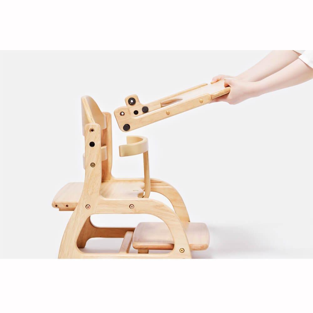 成長や体型に合わせ、座板は前後に4段階、足置き板は上下に3段階調整でき、5才ごろまで使用可能。