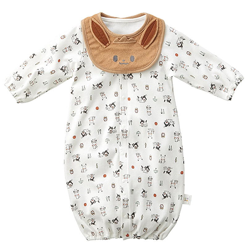 モンポケ イーブイ 新生児2WAYドレス スタイ付き (ベージュ×50-70cm)