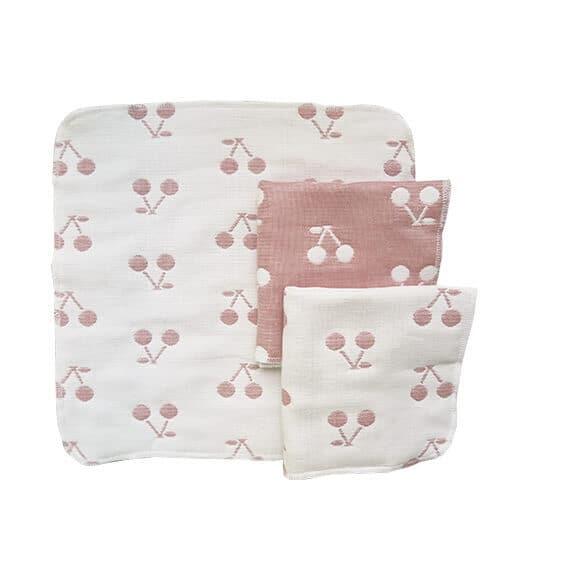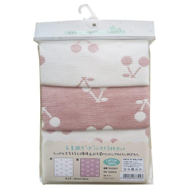 6重織ガーゼハンカチ 3枚組 チェリー柄 ベビーザらス限定
