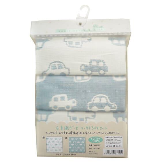 6重織ガーゼハンカチ 3枚組 クルマ柄 ベビーザらス限定