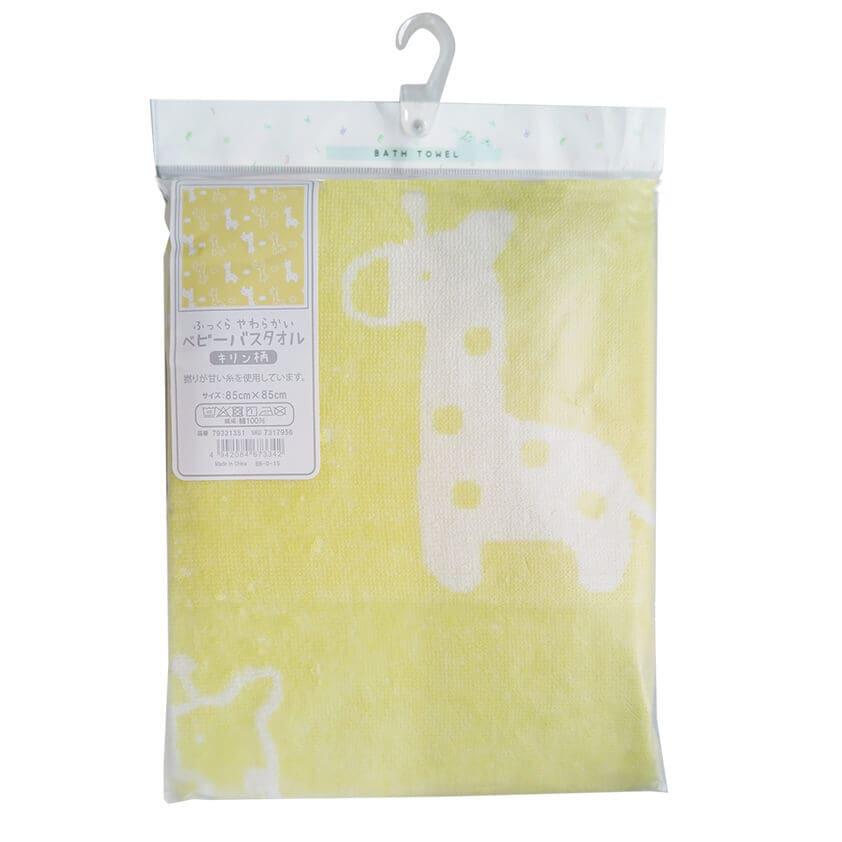 正方形湯上りタオル 総柄 キリン柄(イエロー×フリー) ベビーザらス限定
